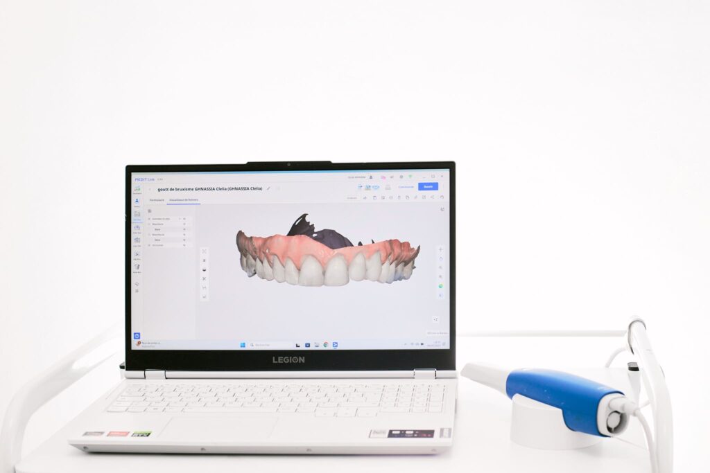 Elle capture la bouche en 3D avec une grande précision, ce qui facilite la réalisation des prothèses (couronnes, inlays/onlays), des gouttières ou des projets esthétiques.